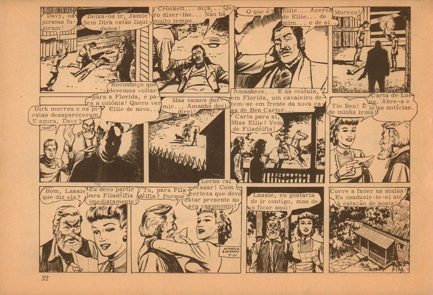 Aunque el tebeo portugués es, por desgracia, un absoluto desconocido para el aficionado español, algunas veces llegan a los mercadillos de reventa ejemplares de colecciones del país vecino. En una de mis búsquedas por el Rastro madrileño di con dos de estos ejemplares: una novelita gráfica en blanco y negro de 17,5x12,5 centímetros con el curioso título Nos dias truculentos do Boxe antigo! en bastante mal estado y a la que le faltan una docena de páginas de las 64 de que constaba, con una historia de ambiente pugilístico sin firma que parece traducción de un original británico, y el número 17 de la colección Águia, un cuaderno de 15x22 centímetros con 32 páginas más cubiertas, también en blanco y negro, con precio de portada de 25 tostoẽs, cuyo contenido consistía en un episodio de la serie de Herron y McArdle que comenzaba con la página dominical de fecha 3 de junio de 1956 y concluía con la tira del 22 de septiembre del mismo año.