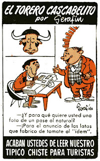 El inconfundible dibujante Serafín creó para el Suplemento de Humor de El DDT de Bruguera una serie de chistes de un insólito torero que semana tras semana protagonizó más de cincuenta de "nuestros típicos chistes para turistas". Afortunada o desgraciadamente, el humor taurino es tan incomprensible hoy día para muchos españoles como para cualquier extranjero.
